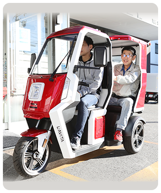コンパクトな車体ながら100%電気でパワフルに走行し、あなたの快適な暮らしをお助けします。